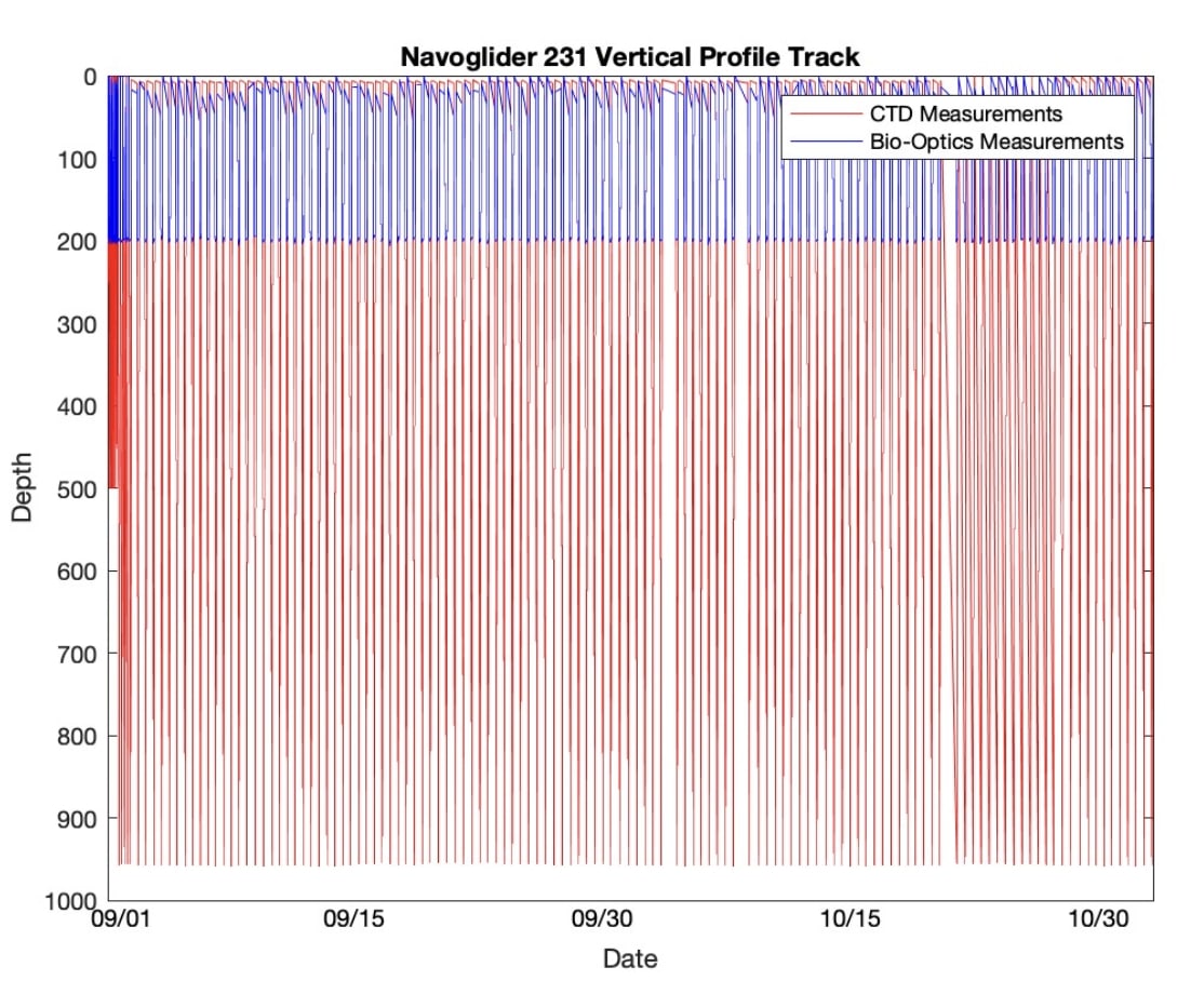 This dataset contains Slocum glider in-situ measurements taken during the Sub-Mesoscale Ocean Dynamics Experiment (S-MODE) field campaign. The experiment was conducted approximately 300 km offshore of San Francisco, during a pilot campaign that spanned two weeks in October 2021, and two intensive operating periods in Fall 2022 and Spring 2023. S-MODE aims to understand how ocean dynamics acting on short spatial scales influence the vertical exchange of physical and biological variables in the ocean. US Naval Oceanographic Office (NAVOCEANO) Slocum gliders measure subsurface properties including temperature and salinity by profiling to a depth of 1000m at a fixed location every 4 hours. Data are available in netCDF format.